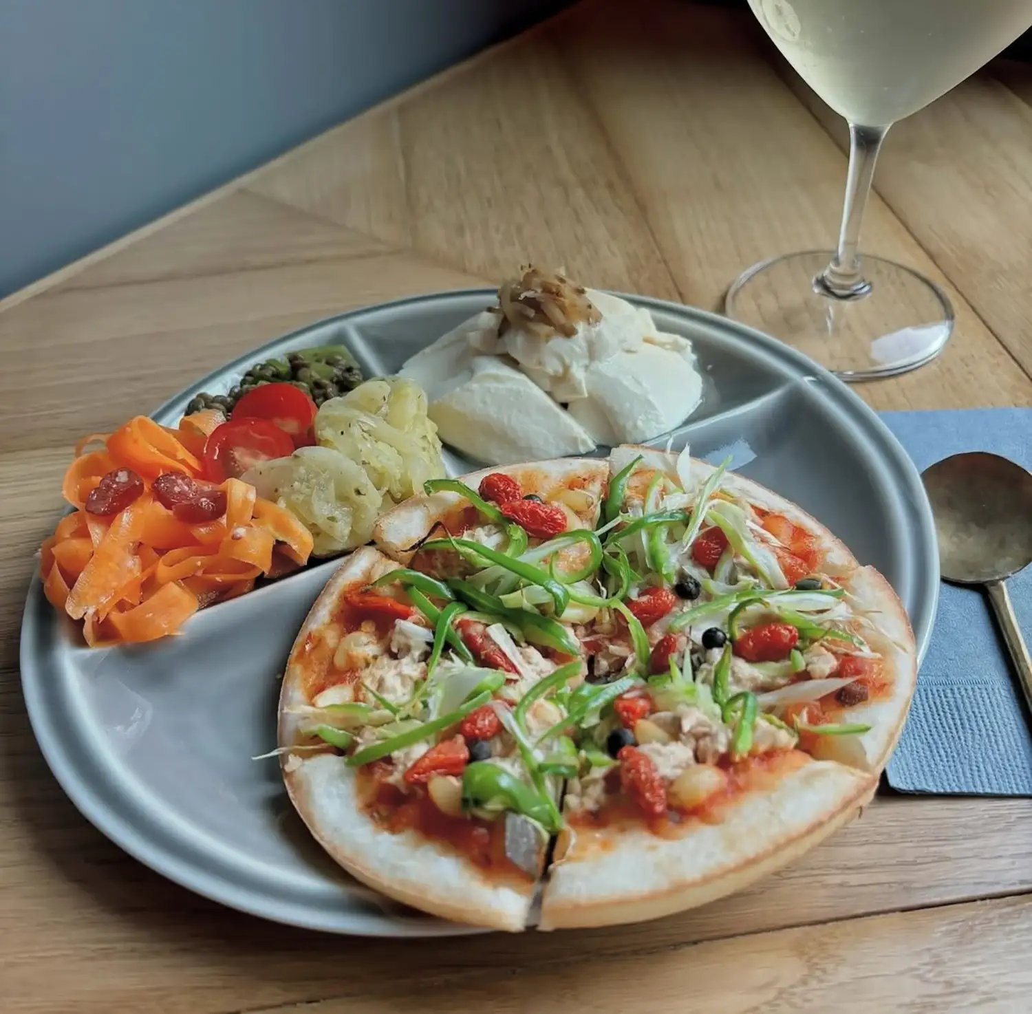 グルテンフリー&チーズなどの乳製品を一切使用していないオリジナル薬膳ピザ。トマト味と黒カレー味をご用意しております。