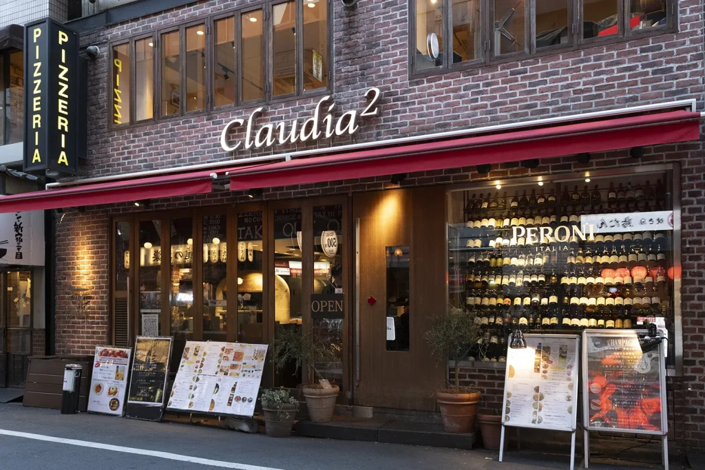 石窯で焼くナポリ風ピッツァが評判のクラウディア2。ふっくらとしたふちの生地の香ばしさが魅力です。小皿料理も充実し、イタリアワインを中心に世界各国のワインがそろい、セラーには約400種類、グラスは30種類以上を用意。